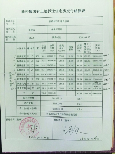 “拆迁办当时说新景花苑2期能办到房产证,所以我才会买这里的安置房。”王先生告诉记者,因为比较相信新桥镇镇政府,在得知房屋能办产权证,而且是交付3-6个月内就能办理,我没怎么多考虑,就将所有的钱投到了安置房购置当中。“当时一共购置了8套房子,总面积在700多平方米。”