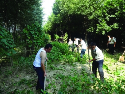 城管队员在铲除菜地