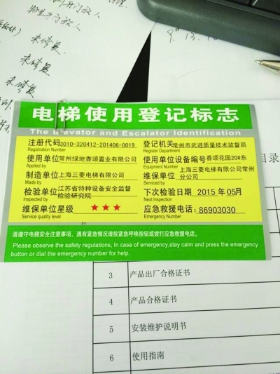 但是,让这位业主感到不解的是,就是这样的电梯安装质量,竟然已经通过江苏省特种设备安全监督检验研究院常州分院的检验,并获得了常州市武进质监局发放的使用登记证,“这么短的时间坏了这么多,它的检验为什么能合格?”