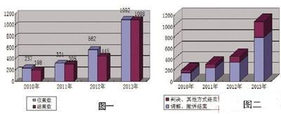 8日,萧山法院发布了2010年至2013年物业纠纷的审判情况:2010年度收案237件结案198件;2011年度收案321件结案305件;2012年度收案562件结案445件;2013年度收案1092件结案1088件。(见图一)