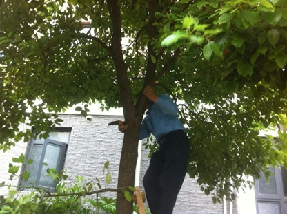 7、绿化巡查,对新种及部分树木进行加固、疏枝。