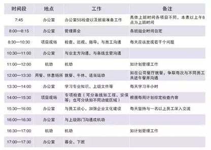 笔者还总结了一则项目经理时间管理顺口溜:“每天检查两小时,提高管理有路子;每天学习半小时,充实自己有面子;每天沟通半小时,里里外外一家子;每天运动半小时,健康自己好身子;每天劳动半小时,扎根基层有乐子。”