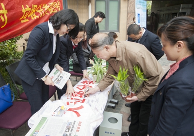 活动现场,科瑞物业不仅将垃圾分类细则以及垃圾分类的重要性制作成易拉宝海报,摆放在显要位置进行宣传,而且将相应内容制作成粘纸以及冰箱留言板发放到社区业主手中,方便大家日常对照使用。同时,还设置废旧电池回收兑换盆栽、垃圾袋,以及垃圾分类飞镖游戏,让广大业主们在轻松惬意的游戏过程中加深对垃圾分类知识的了解。超过400位社区业主还踊跃响应地球不止一小时,垃圾分类要坚持签名活动,在横幅上承诺未来要采取垃圾分类措施,减少对地球资源的消耗,保护我们共同的家园。