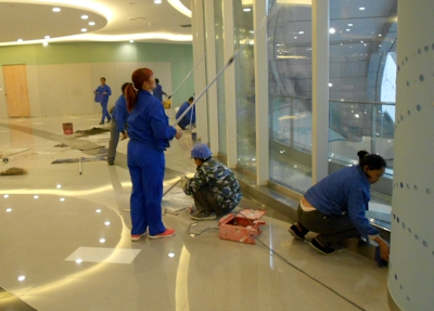百联物业在世博源开荒期间,从总经理室成员到各部门和管理处,大家加班加点全情投入世博源现场,以世博精神充分展现百联物业的战斗力。公司从30个管理处抽调200多名业务骨干对世博源工地进行增援。世博源倒计时30天内,工地上施工人员累计人数达到5000多人,高峰时段同时作业人员达到1000多人。现场成立开荒保障部,从饮食起居、医疗急救、物资供应到车辆运输,确保提供一切保障物资。