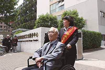周一上午十点刚过,黄浦新苑物业管理处经理宓云飞和客服主管尹雯就出发前往居委会,这是他们和老人约好的服务时间,这天预约了陪诊服务的是小区内77岁的王文君老先生。接到老人后,宓云飞开着车将他们送到了半淞园社区卫生服务中心。尹雯从后备箱里搬出早已准备好的轮椅,让王文君坐下。