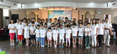 7月7日上午,21名小学生及家长,身着白色喜雅爱心 智慧生活T恤衫,兴高采烈地参加由仙霞街道主办、仙霞物业公司下属喜雅爱心社区服务中心承办的爱心暑托班 快乐有意义首期暑托班开班仪式。
