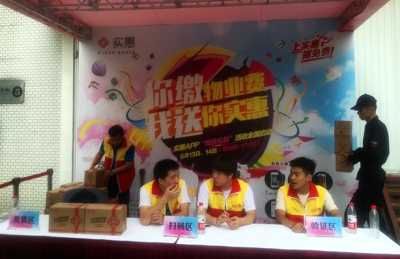 6月13、14日,申大物业联合易居实惠网在万源城E1开展缴物业管理费,得实惠大礼包活动,受到小区业主热烈响应。