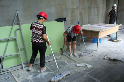开业在即,市区各级领导来该项目视察、现场办公,实地查勘工程进度。为了按时、保质完成这一艰巨的重任,百联物业上下齐心协力,通宵作战,接受了同一时间市级领导勘察、台风逼近引起的灰尘、机件项目进场和布展、货架、沙包等物资运送等考验,为确保顺利开馆,打响了一场场攻坚战。