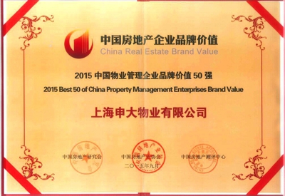 上海申大物业获评2015年中国物业管理企业品牌价值50强